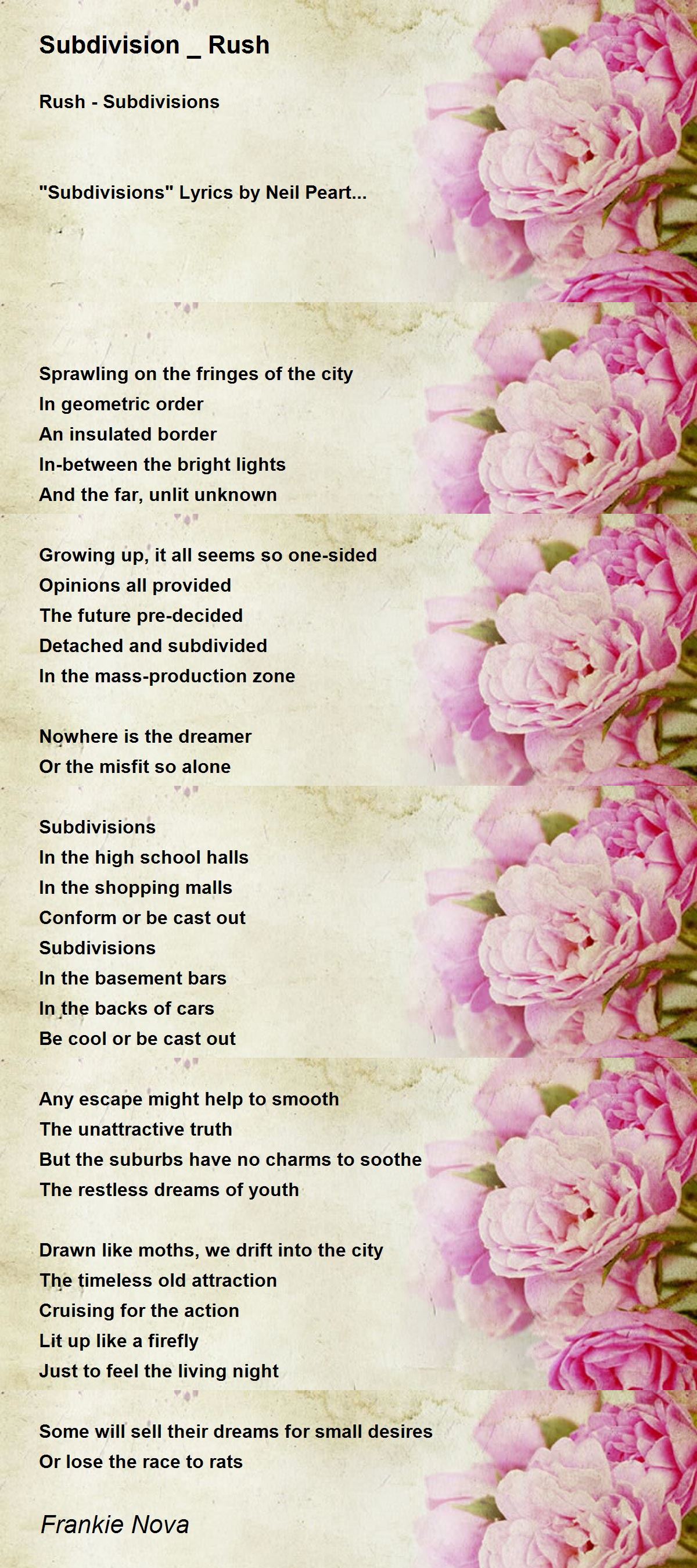 Subdivision Rush By Frankie Nova Subdivision Rush Poem